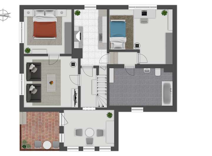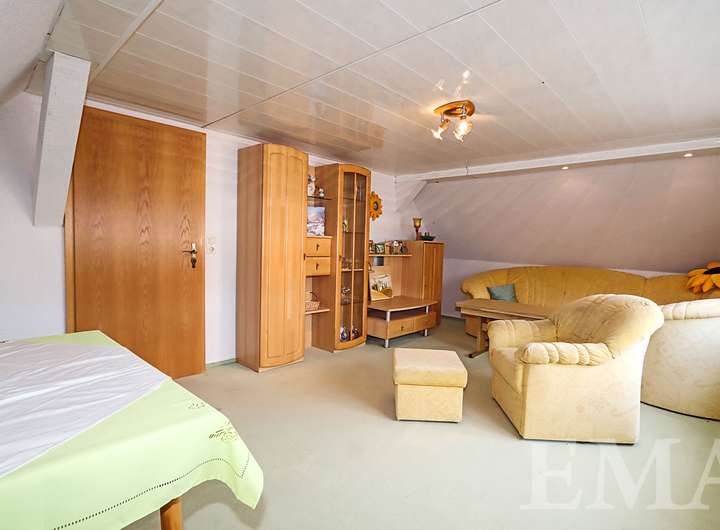 Das Haus teilt sich auf in Erdgeschoss, Dachgeschoss und Teilkeller.