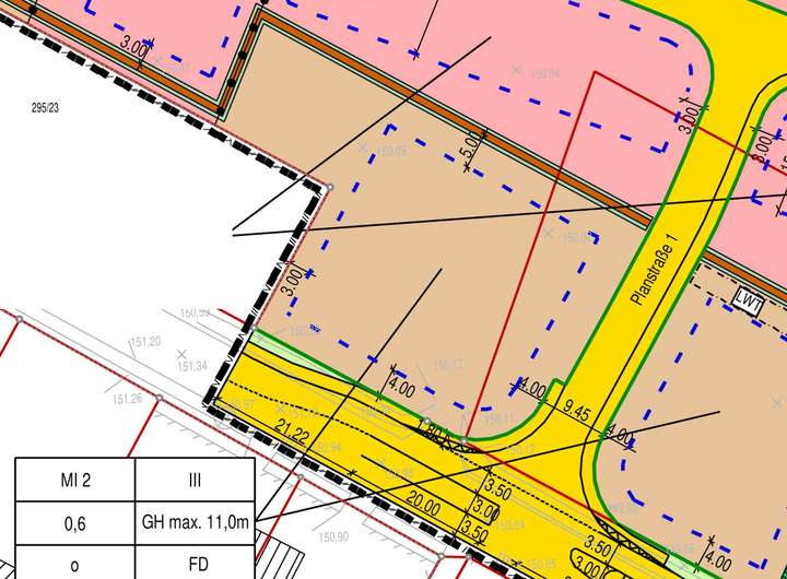 Dieses Grundstück liegt am Rande eines neu entstandenen Wohnquartiers. Es eignet sich für eine Wohnbebauung, besonders für altengerechtes Wohnen. Oberirdisch können entsprechende Parkplätze angeordnet werden. Die Grundflächenzahl beträgt 0,6. Es können maximal 3 Geschosse und eine Traufhöhe von 11 m gebaut werden. Ein Flachdach ist hier vorgeschrieben. Gewerbe kann mit im Gebäude angelegt werden, da es ein Mischgebiet ist.