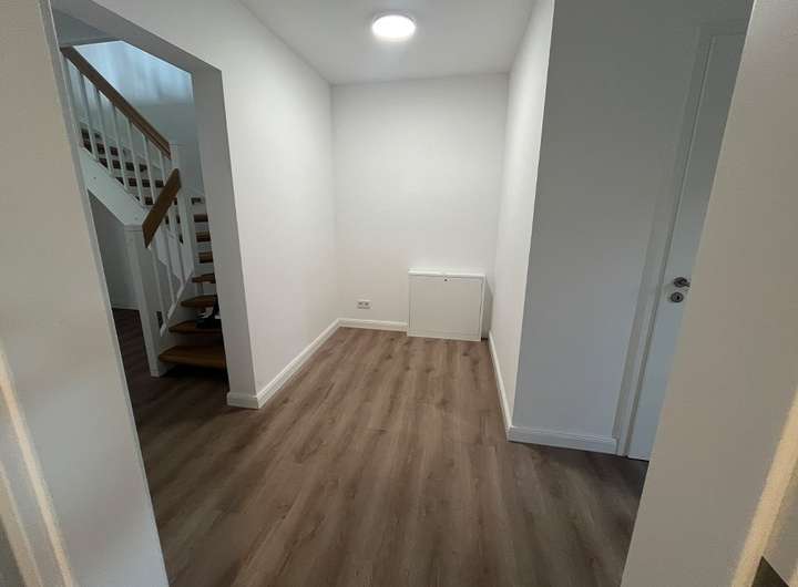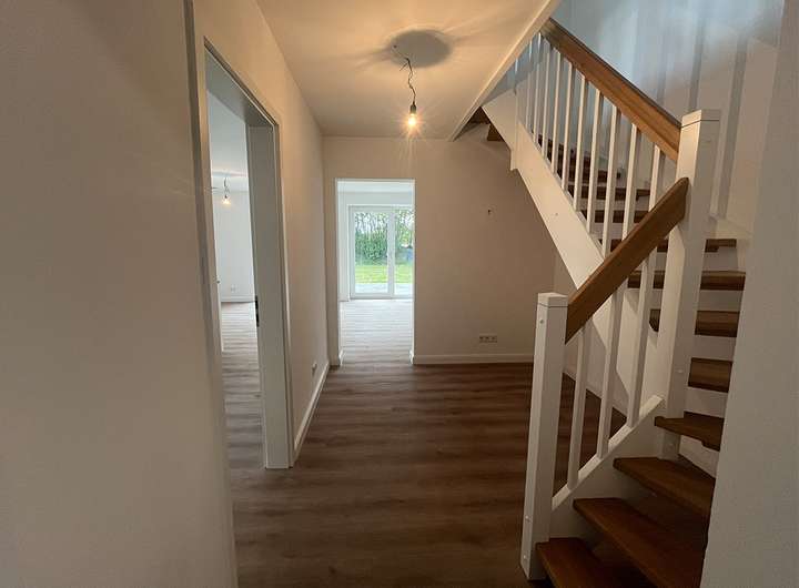 Technisch entspricht das Haus modernen Anforderungen an Energieeffizienz und Komfort: Eine Viessmann-Gaszentralheizung in Kombination mit Fußbodenheizung in allen Räumen sorgt für ein angenehmes Wohnklima. Die zentrale Lüftungsanlage ermöglicht eine kontinuierliche Frischluftzufuhr. 3-fach verglaste Fenster mit Sicherheitsglas, Netzwerk- und TV-Anschlüsse in den relevanten Räumen sowie ein Glasfaseranschluss sind ebenfalls vorhanden. Helle Design-Bodenbeläge in Eichenoptik runden das Gesamtbild ab und verleihen dem Haus eine moderne, hochwertige sowie wohnliche Atmosphäre.