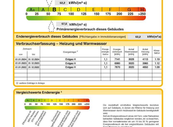52,2 kWh/(m²-a), Gasheizung von 2020, Energieeffizienzklasse B