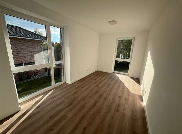 Das Erdgeschoss empfängt mit einem großzügigen Eingangsbereich, von dem aus sich alle Räume dieser Ebene erschließen. Der offen gestaltete Wohn- und Essbereich bildet das Zentrum des Hauses. Großzügige Fensterflächen sorgen für viel Tageslicht, während der direkte Zugang zur Terrasse und zum Garten mit Westausrichtung eine angenehme Verbindung von Innen- und Außenraum ermöglicht.