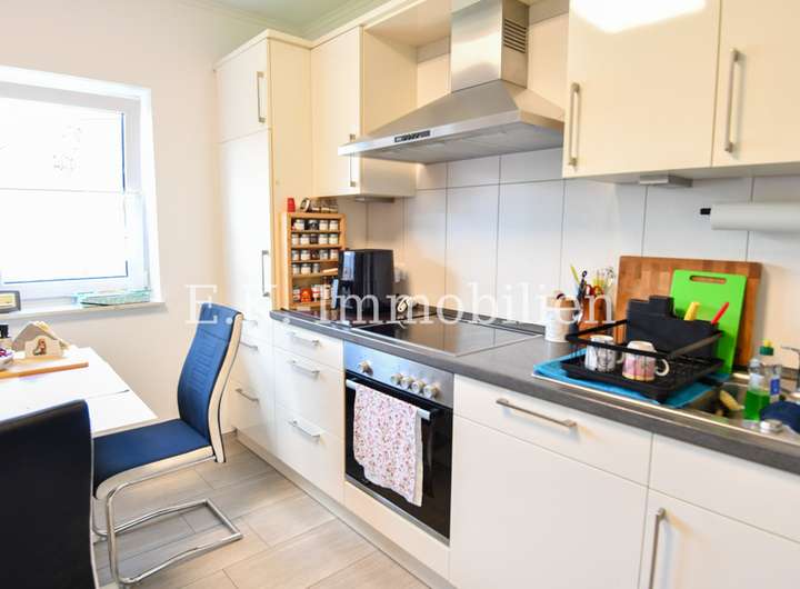 Die Küche ist als separater Raum vorhanden und verfügt über eine helle Einbauküche mit Schubläden, Kochfeld Ceran, Geschirrspüler und Backofen. Hier können kulinarische Köstlichkeiten zubereitet werden.