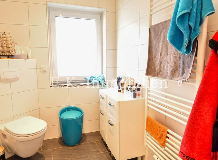 Im Bad befindet sich ein zusätzlicher Handtuch-Heizkörper.