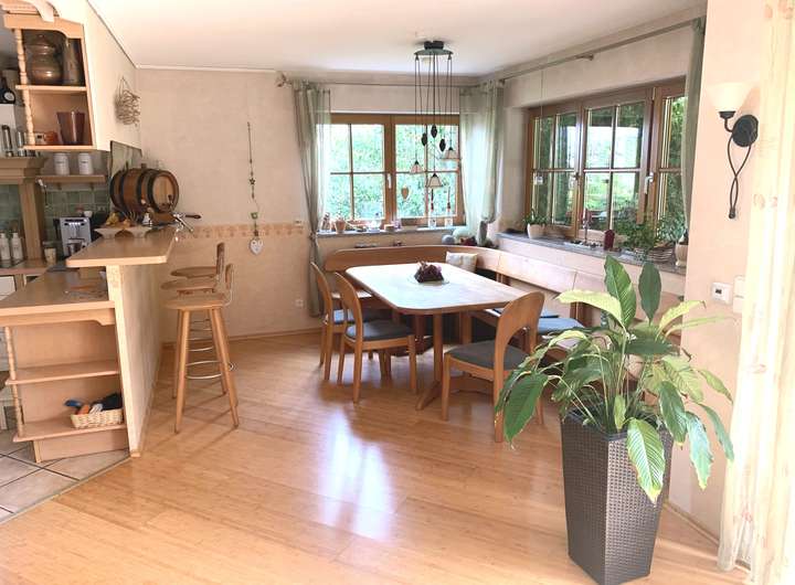In einer sehr gepflegten und ruhigen Anliegerstraße befindet sich dieses wunderschöne Einfamilienhaus mit insgesamt 284 m2 und 10 Zimmern. Eine Unterkunft für ihre Familie, in der sie sich wohl fühlt. Willkommen im großzügigen mit Ebenen versetztem Wohnzimmer, mit Kaminofen und Heimkino, das einen schönen, sehr hellen Eingangsbereich hat. Im Mietpreis ist die angrenzende hochwertige und offene Landhaus-Einbauküche enthalten. Das Esszimmer ist nebenan angeschlossen. All das kann sicherlich als das Herzstück und das Zentrum des Hauses betrachtet werden. Etwas Besonderes im Leben ihrer Familie. Mit Markisen, einem Wirlpool und einer umrankten Terrasse ist der schön gestaltete uneinsichtbare Garten vom Wohnzimmer aus zugängig. Auf diese Weise kann man seine Freizeit genießen und sich entspannen.