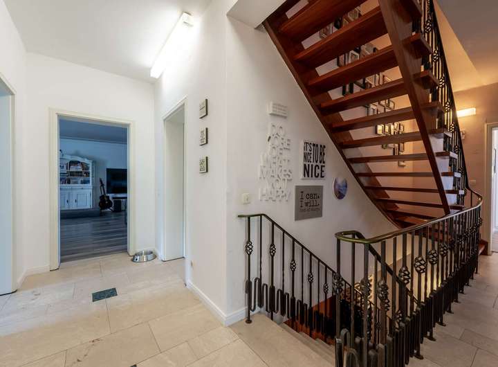 Auf einem parkähnlichen Grundstück mit ca. 1.500 m² Fläche entfaltet sich diese Immobilie zu einem echten Lebenswerk – mit ca. 350 m² Wohnfläche, verteilt auf drei Ebenen, plus einer stilvollen Einliegerwohnung mit separatem Zugang.