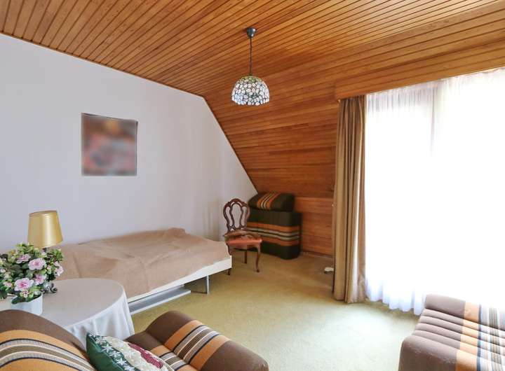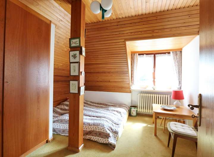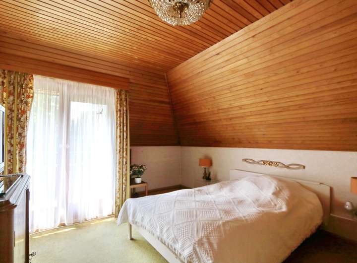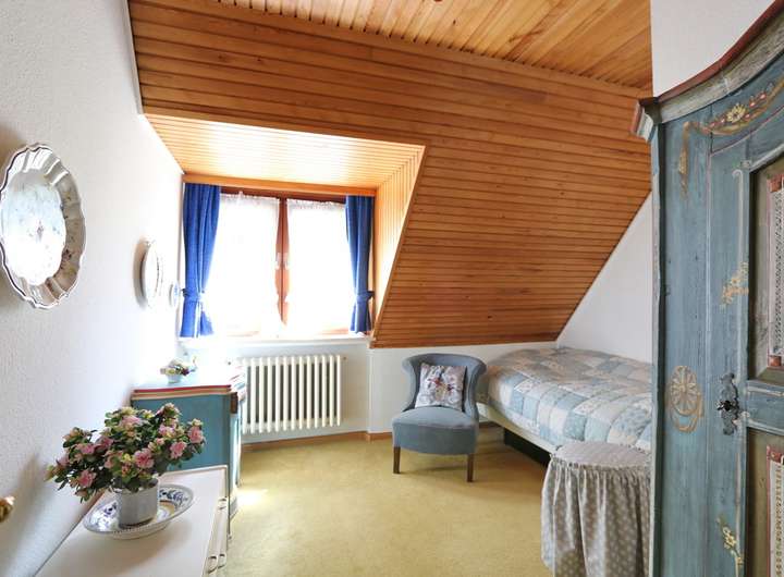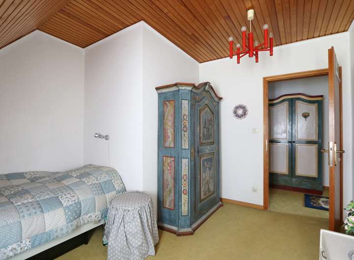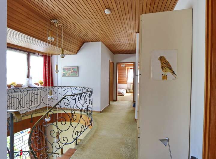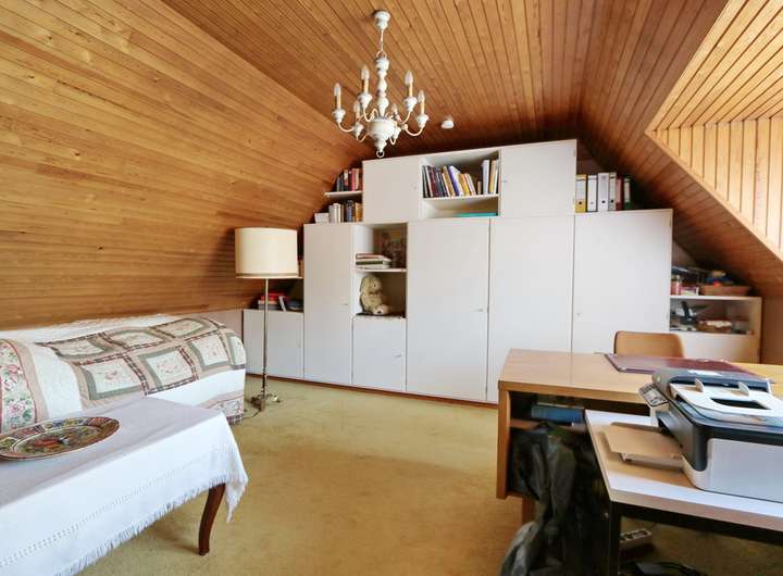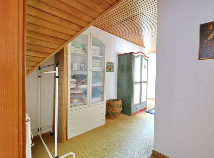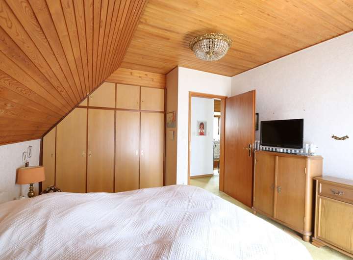 Im ausgebauten Dachgeschoss befinden sich fünf unterschiedlich große Schlafzimmer, die alle ausreichend Platz und Privatsphäre bieten. Der Balkon, von zwei Schlafzimmern aus zu begehen, gewährt einen herrlichen Ausblick in den Garten. Das Wannenbad und ein zusätzliches WC sorgen für Komfort und vervollständigt diese Ebene.