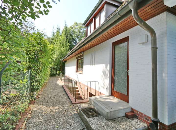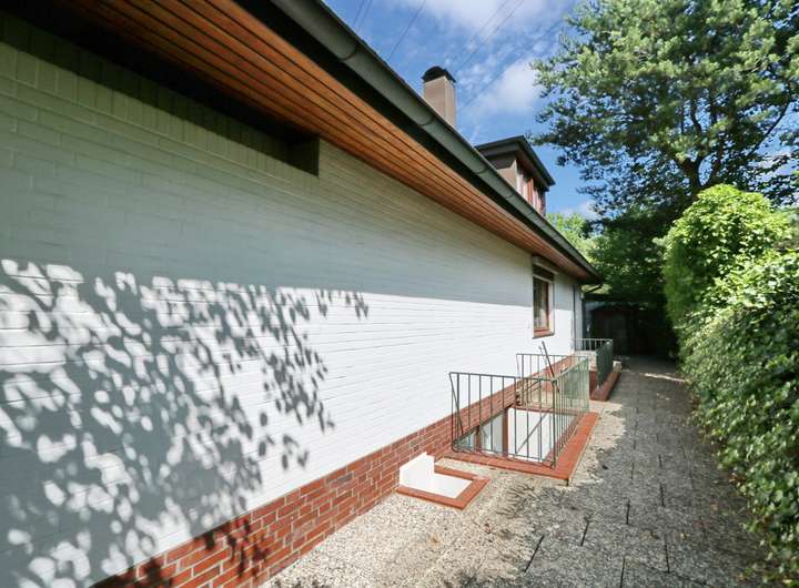 Dieses individuell geplante Architektenhaus, eingebettet in die idyllische Umgebung von Wellingsbüttel in hinterer Bebauung, wurde im Jahr 1969 erbaut und bietet Großzügigkeit vereint mit klassischem Charme. Über eine lange Pfeifenstielzufahrt, die im vorderen Bereich über ein Wegerecht verläuft, gelangt man auf das Grundstück mit einer Größe von ca. 1.076 m². Das Grundstück beeindruckt durch seine sonnige Südausrichtung und einen großen, größtenteils blickgeschützten Garten .