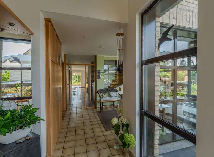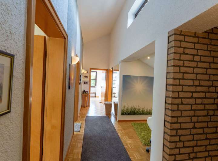 Weitere Erwähnenswerte Ausstattungsmerkmale sind die pflegeleicht begrünte Doppelgarage mit Zugang zum Keller, der in Kürze folgende Glasfaseranschluss sowie der hervorragend angelegte Garten.