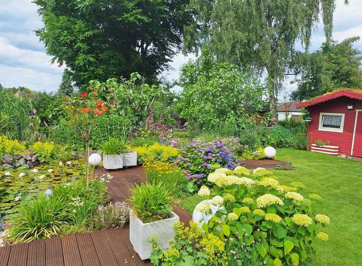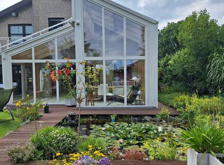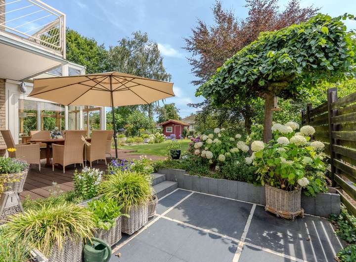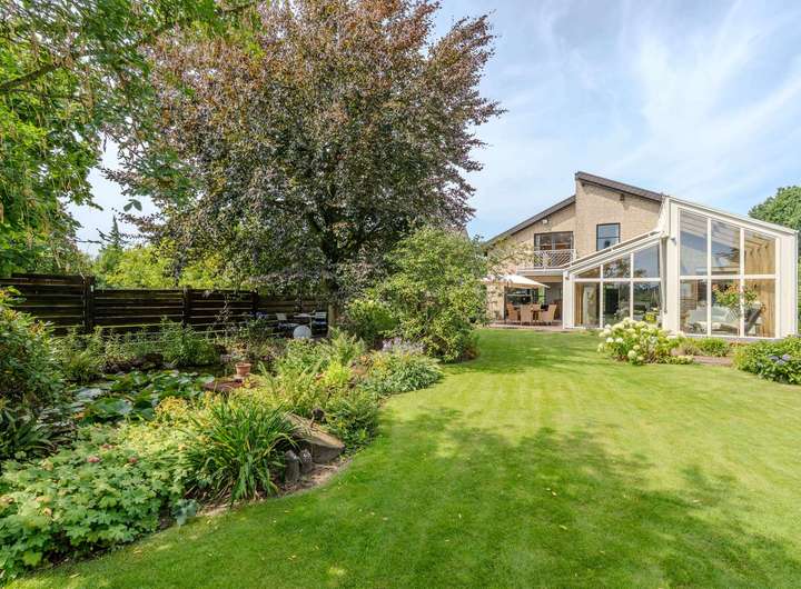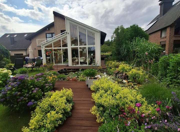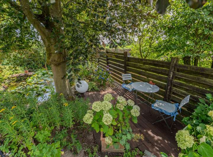 Der weitläufige Garten präsentiert sich sehr gepflegt und naturnah gestaltet – inklusive zweier Teiche. Die Außenanlage bietet zudem Platz für individuelle Gestaltungsideen: Ob Schwimmteich, Pool oder Spielbereich, hier lässt sich Ihre persönliche Gartenoase verwirklichen.