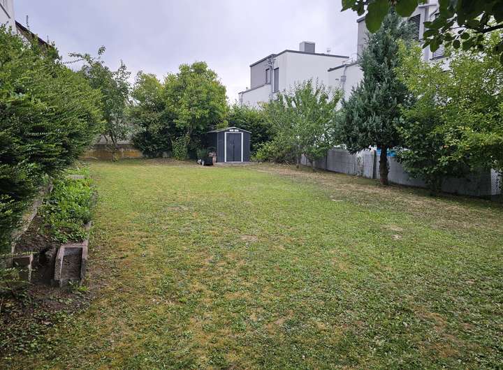 Der Garten ist eben, gepflegt und dank seiner Lage hinter dem Haus wunderbar ruhig. Zwei Stellplätze vor dem Haus runden das Angebot ab. Der Eigentümer wohnt aktuell selbst im Haus, ist aber flexibel und bereit, kurzfristig auszuziehen.