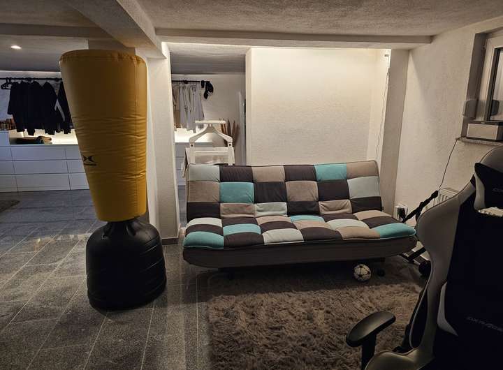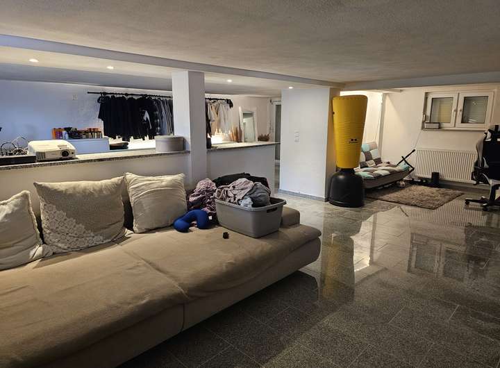 Besonders hervorzuheben ist der Keller: Die ursprüngliche Garage wurde geschlossen und in das Haus integriert. Heute ist dort ein wohnlich ausgebauter Raum entstanden, der aktuell vom Sohn genutzt wird. Daneben befinden sich weitere funktionale Bereiche wie ein Duschbad, ein Hobbyraum und Abstellflächen.