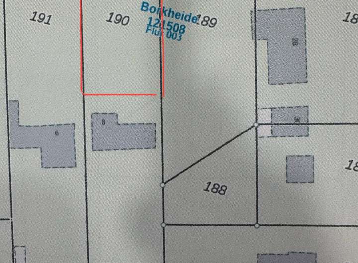 Das Grundstück liegt in Borkheide, im Spechthammer 10. Es ist unbebaut und eine noch zu vermessende Teilfläche eines größeren Areals. Die Fläche kann bis auf ca. 1200 m² erweitert werden (Teilfläche des Flurstücks 189).