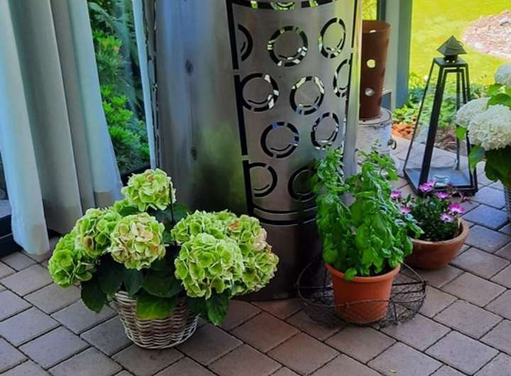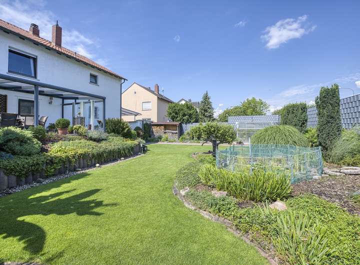 - liebevoll angelegter Garten mit Gewächs- und Gartenhaus