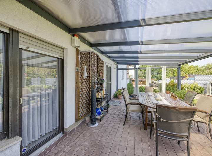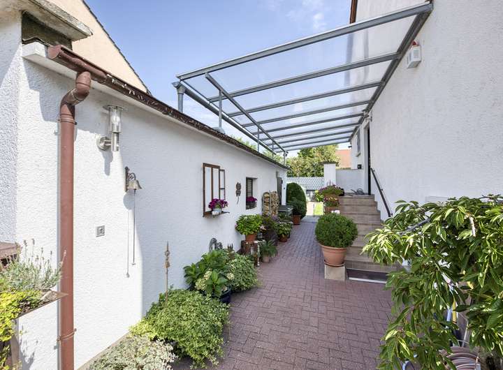 - Überdachter Hofbereich von der Garage zum Hauseingang