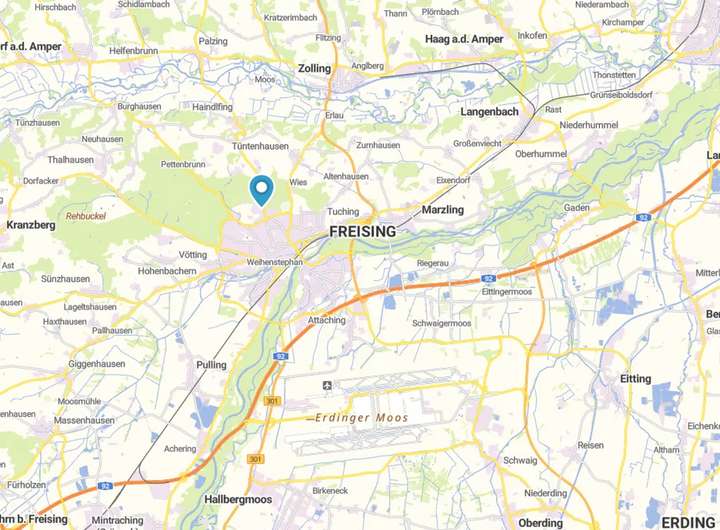 Die Anbindung an den öffentlichen Nahverkehr ist hervorragend: Bushaltestellen befinden sich in fußläufiger Entfernung, der Bahnhof Freising mit direkter Anbindung nach München ist in wenigen Minuten mit dem Fahrrad oder Bus erreichbar. Die Nähe zur A92 sowie zum Flughafen München macht die Lage auch für Pendler äußerst attraktiv.