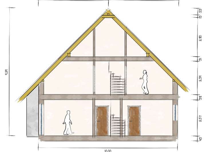 Geplant sind Kunststofffenster mit 3-fach Isolierverglasung, elektrische Rollläden an allen Fenstern, sowie eine Luftwärmepumpe in Kombination mit einer Photovoltaikanlage. Eine Fußbodenheizung sorgt für eine angenehme Wärme in allen Räumen.