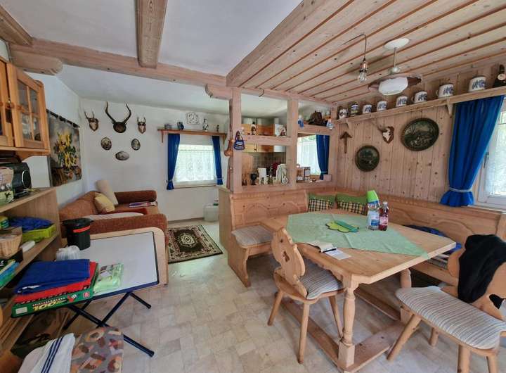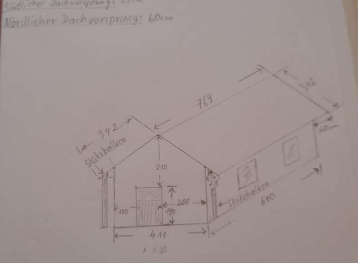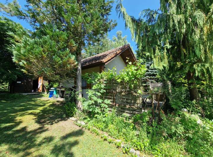 Das massiv erbaute Gartenhäuschen wurde Ende der 80er Jahren umgebaut und präsentiert sich heute als ein gemütliches und funktionales Wochenendhaus. Im Inneren finden Sie einen offenen Wohnbereich mit integrierter Küchenzeile, ausgestattet mit einem Gasherd zum Kochen. Das Haus wird beheizt durch einen Gaseinzelofen, während der Strombedarf über ein Stromaggregat gedeckt wird, auch eine SAT-Anlage ist vorhanden, diese kann ebenfalls über das Stromaggregat betrieben werden. Für eine nachhaltige Energieversorgung besteht die Möglichkeit Solarzellen auf dem Satteldach anzubringen und so umweltfreundlichen Strom zu erzeugen. Die große Terrasse lädt zum Verweilen im Freien ein und bietet einen schönen Blick auf das Grundstück. der Geräteschuppen aus Holz, auf Fundament errichtet, bieten ausreichend Stauraum für Gartengeräte und Zubehör. Im Anschluss an den Schuppen wurde ein WC angebaut, das an die vorhandene Abwassergrube angeschlossen ist. Zusätzlich steht eine Regenwasserzisterne mit 3.000 Liter Fassungsvermögen zur Verfügung.