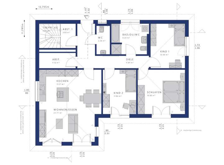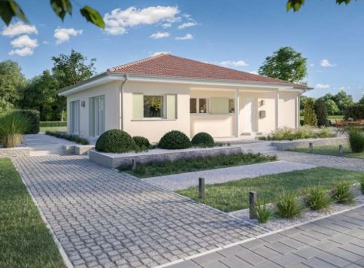 Dieses wunderschöne Fertighaus von Bien-Zenker, das nach Ihren Wünschen und Vorstellungen projektiert wird, verkörpert den modernen Wohnkomfort in Vollendung. Auf einer großzügigen Wohnfläche von 145 m² bietet der Bungalow alles, was das Herz Ihrer Familie begehrt. Genießen Sie großzügige Gemeinschaftsräume, die den idealen Ort für gemeinsame Momente schaffen. Das luxuriöse Badezimmer, das Gäste-WC sowie das Elternschlafzimmer und zwei Kinderzimmer sind optimal angeordnet und bieten sowohl Rückzugsmöglichkeiten als auch Platz für geselliges Beisammensein. Clevere Stauraumlösungen und flexible Erweiterungsoptionen machen das AMBIENCE 113 zu einem echten Alleskönner. Ob Sattel-, Walm- oder Flachdach, jede Variante verleiht Ihrem Zuhause einen einzigartigen Charme, während innen und außen individuell auf Ihre Bedürfnisse eingegangen wird. Hier wird Wohnen zum Wohlfühlkomfort mit Stil.