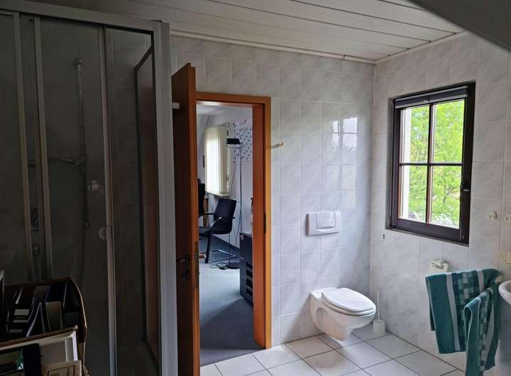 Im Obergeschoss erwarten Sie ein geräumiges Schlafzimmer, zwei großzügige Arbeits- oder Kinderzimmer, eine Küche sowie ein weiteres Badezimmer.