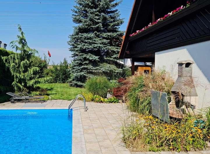 Balkon, Terrasse, Garten, Keller, Duschbad, Pool · Schwimmbad, Einbauküche, Gäste-WC, Kamin, Barrierefrei, Laminat, Teppichboden, Fliesen