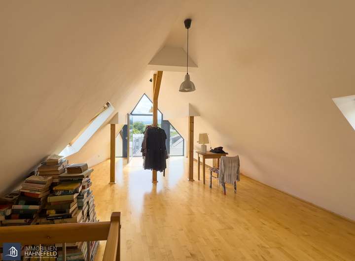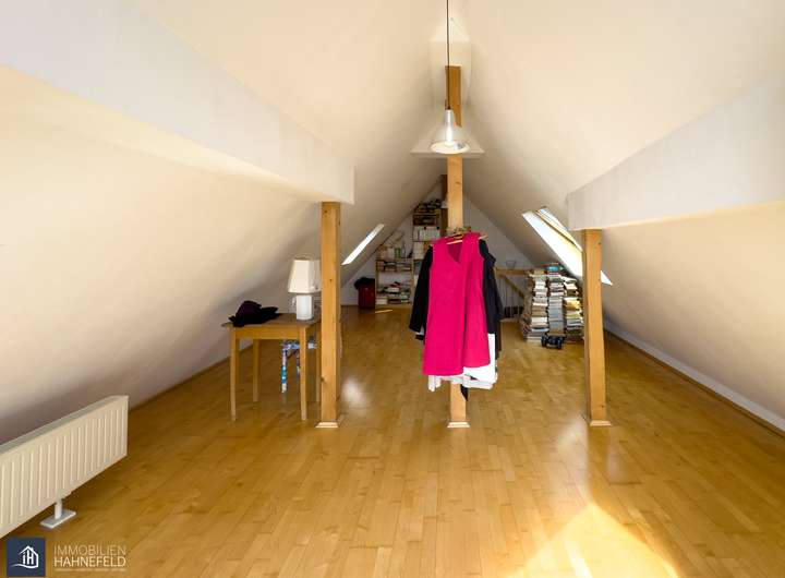 Im Dachgeschoss befindet sich großzügiger Abstellraum sowie der Zugang zur sonnigen Dachterrasse, die sich auf dem Anbau befindet. Hinweis: Das Dachgeschoss wird ausschließlich als Abstellfläche genutzt. Gemäß § 2 Abs. 2 WoFlV kann die Fläche dennoch zur Wohnfläche gerechnet werden, da sie zur abgeschlossenen Wohneinheit gehört.
