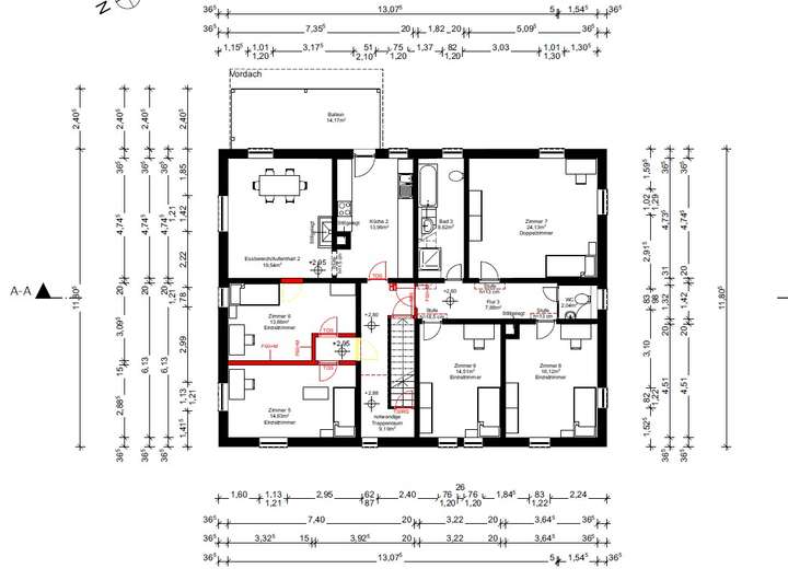 - 1 zusätzliches Gäste-WC (insgesamt 4 WCs)
