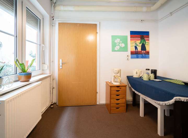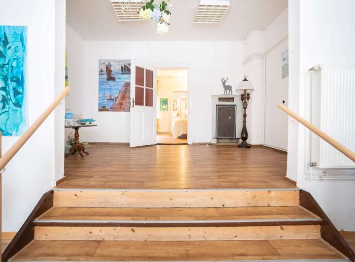 Das Zentrum von Barth ist belebt, aber nicht laut. Hier kennt man sich, sagt sich „Guten Tag“ und erledigt die Dinge des Lebens in den vielen kleinen Geschäften, die es hier noch gibt. Das Haus steht im Stadtkern und gehört zur Barther Geschichte. Die alteingesessenen Barther gingen dort früher zur Drogerie.