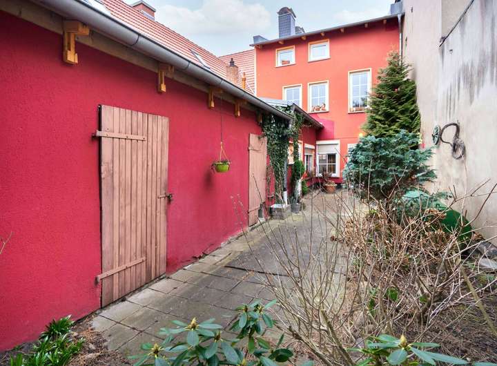 Hinter dem Haus befindet sich der Garten, der durch den Flur und von der Ladenfläche aus zugänglich ist.