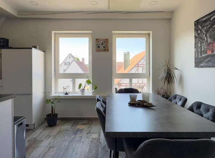 Diese Maisonettewohnung vereint alles, was das tägliche Leben angenehm macht: kurze Wege, ein durchdachter Grundriss und ein gepflegter, neuwertiger Zustand. Das 1986 erbaute Mehrfamilienhaus liegt in zentraler Lage von Gärtringen. Einkaufsmöglichkeiten, Ärzte, Apotheken, Banken und Bäckereien – alles erreichen Sie in wenigen Schritten. Auch die Verkehrsanbindung ist optimal: Mit der S1 gelangen Sie schnell nach Böblingen und Stuttgart. Die Wohnung selbst überzeugt mit einem hellen, freundlichen Wohn- und Essbereich, einer modernen Küche sowie einem Badezimmer mit Dusche und WC auf der ersten Ebene. Über die stilvolle Holztreppe erreichen Sie das Obergeschoss, wo Sie ein großzügiges Schlafzimmer erwartet – Ihr persönlicher Rückzugsort.
