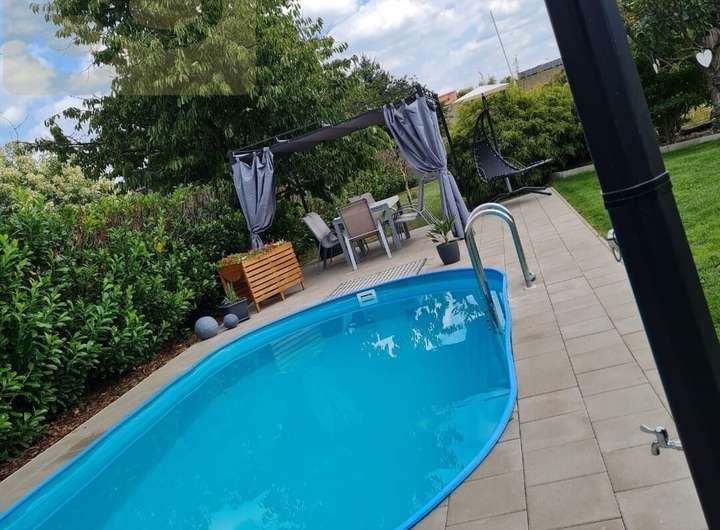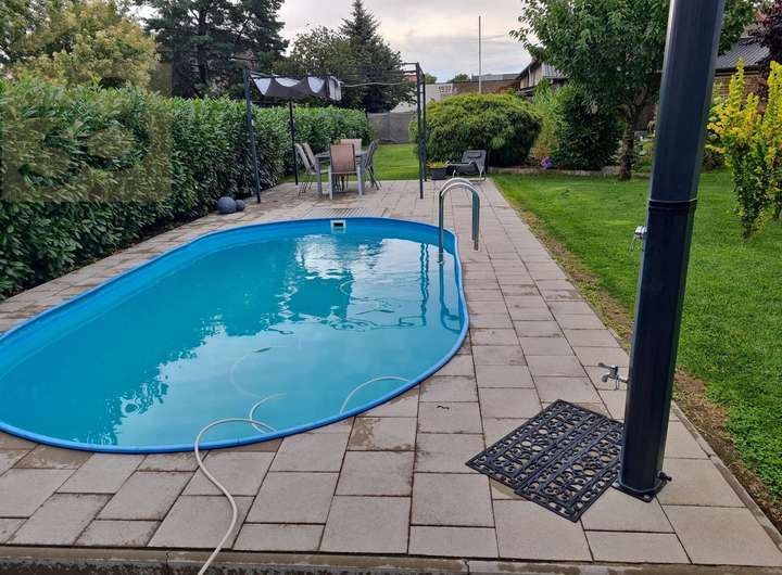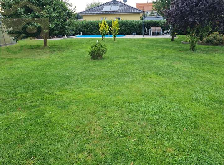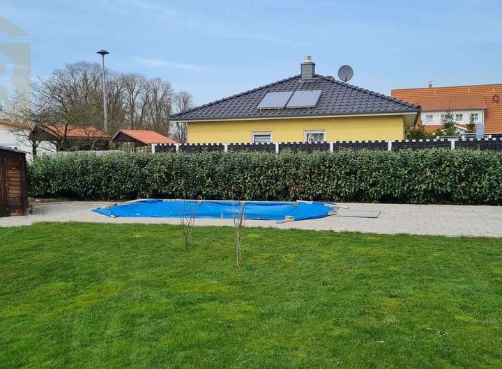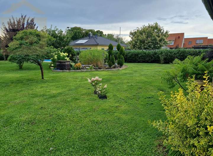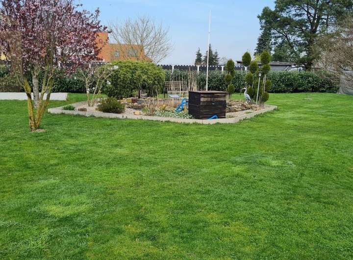 Das Grundstück präsentiert sich als eine Oase der Ruhe und vielfältiger Nutzungsmöglichkeiten. Es ist komplett umzäunt und aufwendig bepflanzt, was nicht nur für Privatsphäre sorgt, sondern auch eine bereits etablierte, ansprechende Gartenlandschaft bietet. Ein besonderes Highlight ist der attraktive Poolbereich, der harmonisch in eine weitläufige Terrasse integriert ist – ideal für entspannte Stunden im Freien und gesellige Zusammenkünfte. Ergänzt wird das idyllische Ambiente durch einen charmanten Teich, der die natürliche Schönheit des Anwesens unterstreicht.