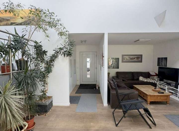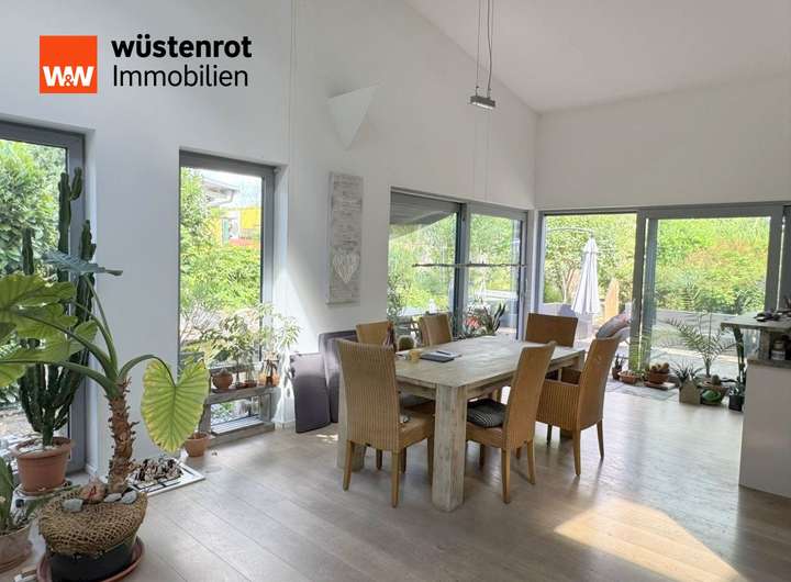 Das Einfamilienhaus mit Pultdach beeindruckt durch seine moderne Ausstattung und durchdachte Architektur. Hohe Decken und bodentiefe Fenster im Erdgeschoss sorgen für ein offenes und lichtdurchflutetes Ambiente. Die Galerie mit den Schlafräumen und die elegante Edelstahltreppe verleihen dem Wohnraum zusätzlichen Charme. Herzstück des Hauses ist die offene Wohnküche mit Einbauküche und einladendem Kamin, perfekt für gesellige Abende mit Familie und Freunden. Der weitläufige Garten, ausgestattet mit einem Fischteich und Grillplatz, bietet reichlich Platz für Kinder zum Spielen sowie die Möglichkeit, einen Pool zu integrieren.