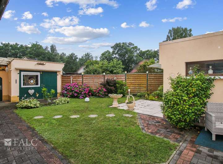 Vom Wohnzimmer aus haben Sie einen schönen Blick auf den gepflegten Garten. Der Garten selbst ist ein Highlight der Immobilie, mit einem liebevoll angelegten Innenhof, der eine Hobbyküche und eine Räucherkammer beherbergt. Ein idealer Ort für gesellige Abende im Freien mit Freunden und Familie.