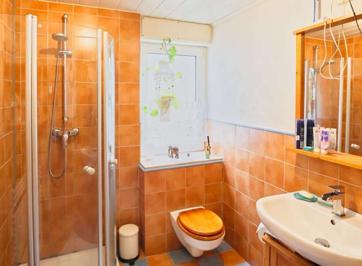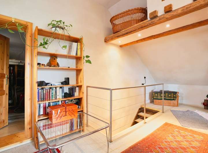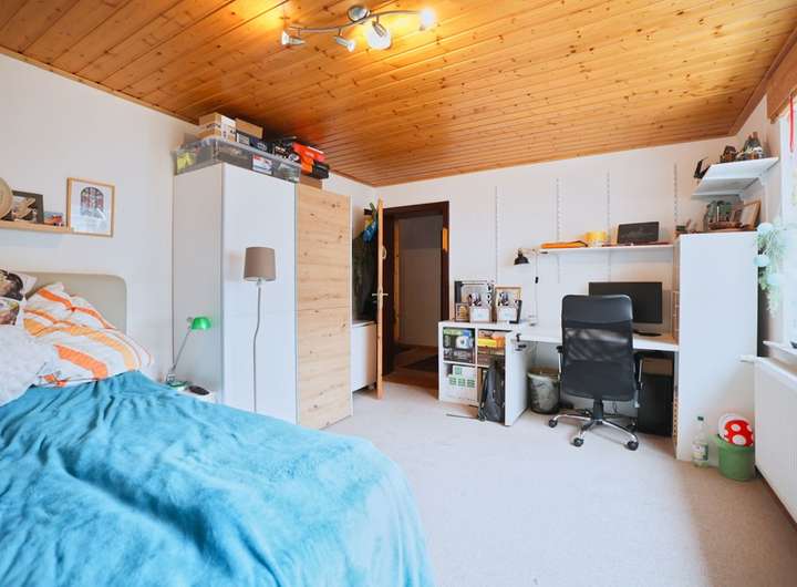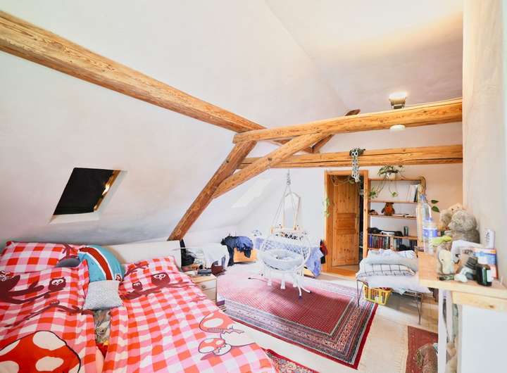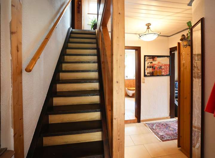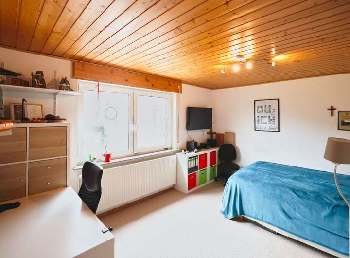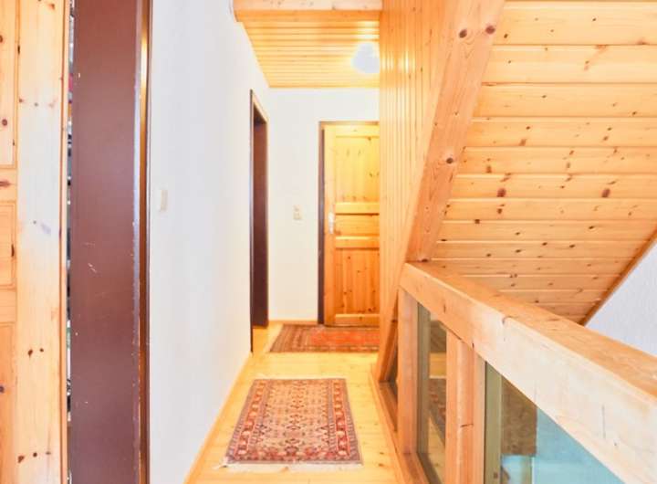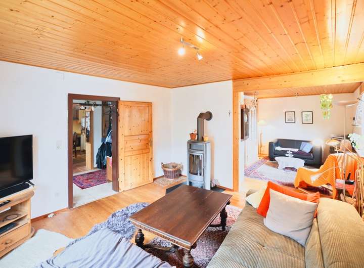 Im Erdgeschoss befindet sich eine große Wohn-Küche mit angrenzendem Vorratsraum. Im Wohn- und Esszimmer sorgt ein Kaminofen in den kalten Monaten für behagliche Wärme. Ein Tageslichtbadezimmer sorgt mit einer Eckdusche für den nötigen Komfort. Im ersten Obergeschoss befinden sich 4 großzügig bemessene Zimmer, die man als Schlaf-/Arbeitszimmer oder einem weiteren Wohnzimmer nutzen kann. Auf der gleichen Etage befindet sich das zweite Tageslichtbad mit Badewanne. Das ausgebaute Dachgeschoss wurde bisher als großes Schlafzimmer mit begehbarem Kleiderschrank und Abstellraum genutzt und bietet mit seiner Fläche von über 60m² genügend Raum für weitere Wohnideen. Durch große Doppel-Fenster kann man einen unverbaubaren Blick in den nahen gelegenen Hunsrück genießen.