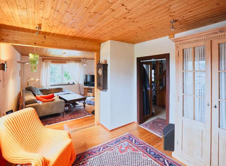 Zum Verkauf steht dieses großzügig bemessene Landhaus, bei dem es sich um ein ehemaliges landwirtschaftlich genutztes Anwesen handelt. Durch ständige Renovierung und Sanierung befindet es sich in einem gepflegten und modernen Zustand. Mit einer Wohnfläche von 223m² und einer Grundstücksfläche von 1084m² bietet es ideale Voraussetzungen für eine Familie mit Kindern, die viel Raum zum Entfalten suchen. Das charmante Landhaus verfügt über insgesamt neun Zimmer, verteilt auf drei Etagen.