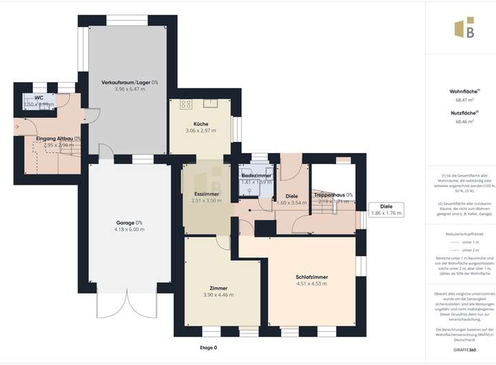 Erdgeschoss: ca. 64 m² Wohnfläche, ideal für Großeltern oder als separate Einheit mit eigenem Zugang und Garage