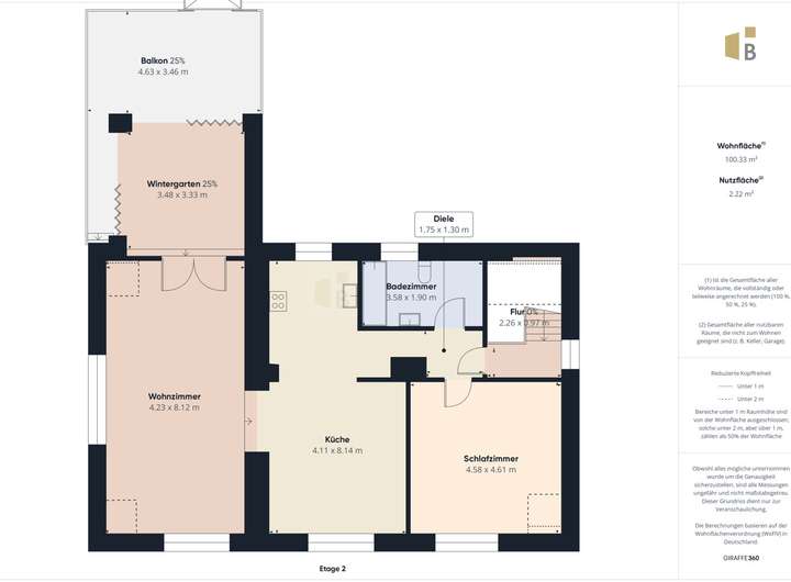2. Obergeschoss: ca. 100 m², mit lichtdurchflutetem Wohn-/Essbereich, großem Schlafzimmer, Küche, Bad sowie Wintergarten und Dachterrasse