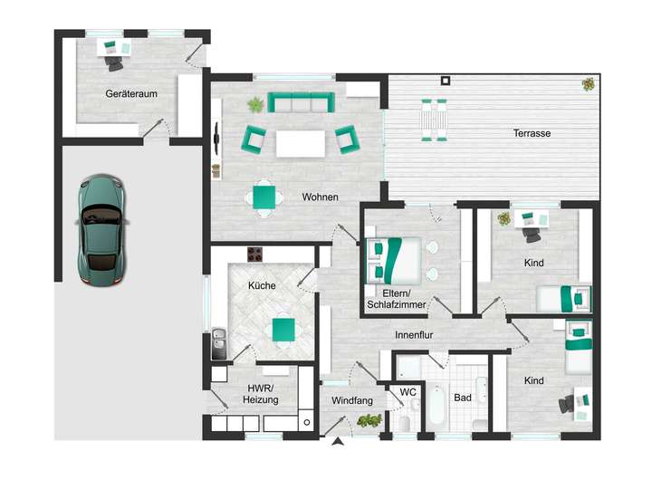 Der Außenbereich des Hauses ist ebenso beeindruckend. Der gepflegte Garten bietet eine Oase der Ruhe und ist perfekt für Familienaktivitäten, Grillabende oder einfach nur zum Entspannen. Ein Carport und ein zusätzlicher Abstellraum bieten praktischen Stauraum für Fahrzeuge und Gartenutensilien. Ein Gäste-WC im Erdgeschoss sorgt für zusätzlichen Komfort für Besucher.