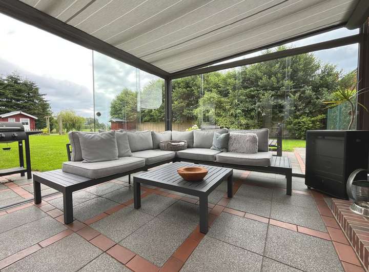 Sommergarten mit Spotlights und elektrischer Beschattung