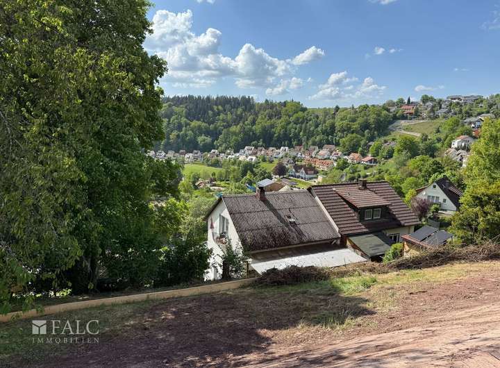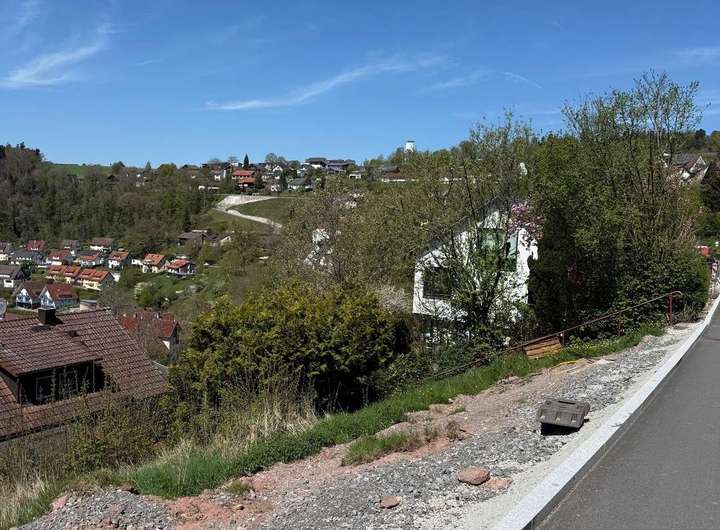 Voll erschlossenen, großzügiges Hanglagen-Baugrundstück, in sonniger West Lage, mit besten Aussichten über Altensteig hinweg.