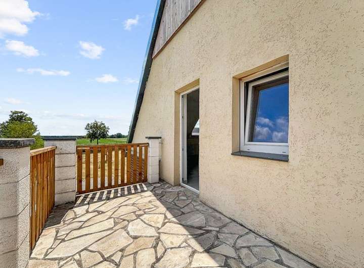 Das Dachgeschoss hingegen besitzt, zwei Schlafzimmer, ein Wohnzimmer, eine Küche, zwei Bäder (wovon eins ohne Armaturen ist), einen Abstellraum und einen Balkon in Ost-Ausrichtung.