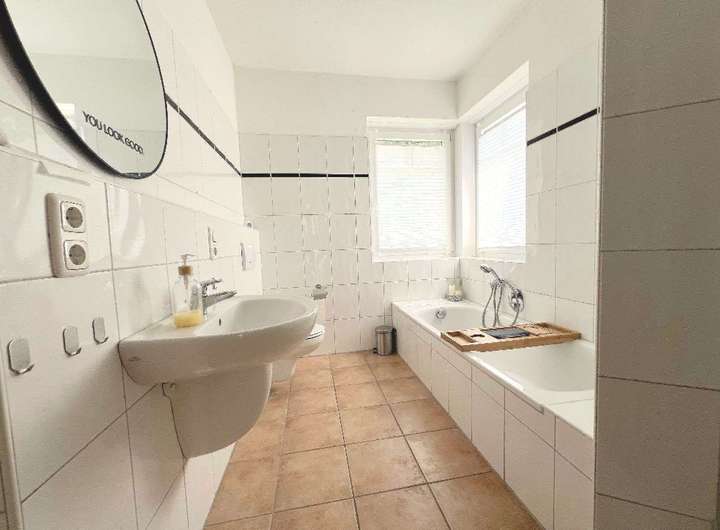 Da man sich meistens zunächst keine weiteren Gedanken dazu macht…, aber eine große überdachte Terrasse - wie sie es hier gibt - bietet an warmen, regnerischen Tagen eine sehr gute Möglichkeit, sich dennoch draußen aufzuhalten. Wer hier wohnt, wird plötzlich feststellen, dass die Anzahl der Tage im Jahr deutlich zunimmt, an denen man draußen sein Frühstück oder abends ein schönes Essen auf der Terrasse genießt - nur weil die Möglichkeit besteht. Dies ist tatsächlich ein großer Zuwachs an Lebensqualität!