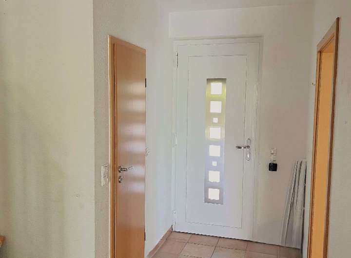 Vom Hauswirtschaftsraum führt auch eine Tür nach draußen und somit kann man direkt zum Autostellplatz / zur Auffahrt / "dem Rondell“ vor dem Haus " gelangen. Eine gute Lösung, wenn man mit einem Fahrzeug voller Einkäufe zurückkehrt.