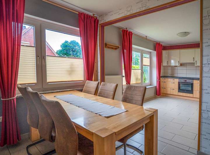 Das Einfamilienhaus befindet sich in einer ruhigen, grünen Wohngegend im ostfriesischen Dornum. Die Umgebung zeichnet sich durch eine angenehme Nachbarschaft, gute Infrastruktur und die Nähe zur Nordsee aus. Einkaufsmöglichkeiten, Schulen und medizinische Versorgung sind bequem erreichbar. Die naturnahe Lage lädt zu Spaziergängen, Fahrradtouren und erholsamen Stunden an der Küste ein.