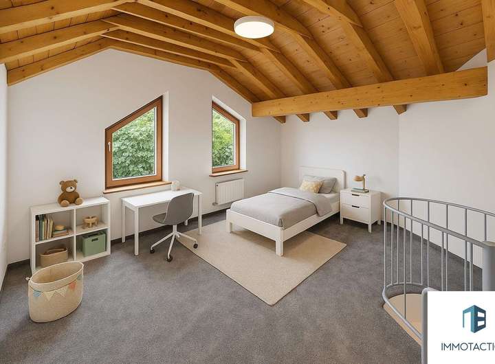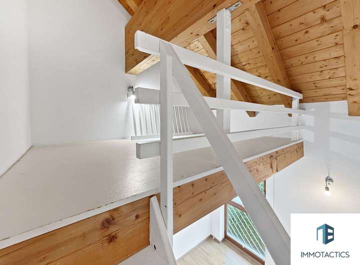 Dieses außergewöhnliche Einfamilienhaus vereint architektonische Raffinesse mit einem durchdachten Grundriss und einer Atmosphäre, die vom ersten Moment an Geborgenheit und Weite vermittelt. Mit rund 193 m² Wohnfläche auf einem 779 m² großen Grundstück, bietet es reichlich Raum für Familienleben, Rückzug und kreative Entfaltung. Ob der großzügige Wohn-Essbereich mit Kamin und hohen Decken, die beliebte Empore im Kinderzimmer, das helle Studio im Dachgeschoss oder der idyllische Garten mit Terrasse – hier lebt man nicht nur, hier fühlt man sich zuhause. Durchdacht von unten nach oben – Wohnen mit Konzept Das Haus empfängt Sie im Untergeschoss mit einem Windfang der mit seinem großartigen Wandschrank Ordnung im Eingangsbereich garantiert. Eine Glastür führt Sie in das weiterführende Foyer welches zu den einzelnen Räumen führt. Hier entsteht ein eigenständiger, ruhig gelegener Bereich – ideal als Gäste-, Arbeits- oder Mehrgenerationenebene. Ein Kinderzimmer, das ebenso hervorragend als Gästezimmer genutzt werden kann, liegt direkt neben einem hellen Tageslichtbad mit Dusche. Das angrenzende Arbeitszimmer bietet mit seinem großzügigen Zuschnitt, einem integrierten Aktenschrank und ruhiger Lage ein ideales Homeoffice oder kreatives Atelier. Darüber hinaus besitzt diese Ebene einen großzügigen und gepflegten Kellerraum, einen Hauswirtschaftsraum, einen separaten Heizungsraum sowie eine praktische Abstellkammer. Hier ist ausreichend Platz für Ihre Hobbys, Vorräte oder auch für Ihr Sportequipment. Der funktionale und dennoch wohnliche Charakter dieser Ebene verleiht dem Haus eine besondere Flexibilität. Im oberen Stockwerk beeindruckt der weitläufige Wohn-Essbereich, der durch seine großflächigen Fenster, offene Holzbalkendecken und dem markanten Kaminofen sofort begeistert. Die Raumhöhe, das natürliche Lichtspiel und die Materialwahl verleihen diesem Herzstück des Hauses eine ganz besondere Wirkung. Ein echtes Highlight: Die großen Fenster im Wohnbereich sind von außen verspiegelt, sodass tagsüber Sichtschutz besteht und Ihre Privatsphäre optimal gewahrt bleibt – ohne auf das Gefühl von Offenheit und Naturverbundenheit verzichten zu müssen. Direkt an den Essbereich schließt sich die komfortabel designte Einbauküche mit eigener Speisekammer an und sorgt damit für kurze Wege. Im hinteren Bereich dieser Etage liegt ebenfalls durch eine Glastür separiert, das Schlafzimmer sowie ein Kinderzimmer mit Empore - für Kinder eine beliebte Rückzugs- und Spieloase. Von hier aus kann man auch den schönen Ausblick über Bad Kreuznach genießen. Auch hier liegt das Tageslichtbad direkt neben den Schlafbereichen und hält auf dieser Ebene eine Badewanne für Sie bereit. Über eine Wendeltreppe erreichen Sie das schöne Dachstudio welches einen besonders geräumigen Stauraum in der Wand versteckt - perfekt geeignet für beispielsweise sperrige Koffer oder veraltete Spielsachen zu verstauen. Das Studio könnte ebenso gut als Schlafzimmer, Kinderzimmer wie auch als Arbeitszimmer dienen - ganz individuell nach Ihrem Nutzungsbedarf. Privatsphäre, Natur & Lebensqualität – Ihre grüne Oase Der geschützte Gartenbereich mit Terrasse, der direkt an den Wohnbereich angrenzt, ist pflegeleicht mit Sträuchern und Hecken eingefasst. Hier finden Sie einen Ort der Ruhe und Entspannung – ob beim Frühstück im Grünen oder Spielen mit den Kindern - Der gesamte Garten ist nicht einsehbar und bietet damit eine hohe Privatsphäre. Bad Kreuznach: Wohnen, wo andere Urlaub machen Das Haus befindet sich in einer ruhigen, familienfreundlichen und zugleich sehr begehrten Wohnlage von Bad Kreuznach, auf dem Kuhberg – der Ledderhoser Weg ist nur wenige Minuten entfernt von Schulen, Einkaufsmöglichkeiten, Ärzten und Freizeitangeboten. Die Kurstadt bietet alles, was das Leben angenehm macht: Weinberge, Natur, Kultur und eine hervorragende Verkehrsanbindung. Für Familien wie für Paare oder Ruhesuc