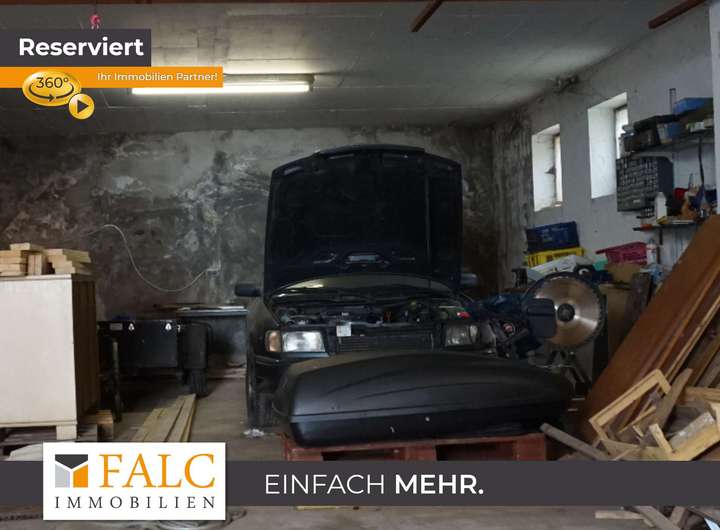 Neben dem Haus finden Sie eine ca. 100 m² große Garage mit einer Deckenhöhe von ca. 4 Metern.