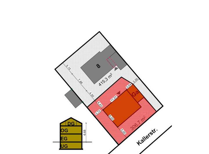 Im Rahmen des gültigen Bebauungsplans Nr. 1, 5. Änderung der Stadt Wolfratshausen ist nach sachverständiger Schätzung sowie unverbindlicher Auskunft des örtlichen Bauamts eine Bebauung des Grundstückes mit einem Einfamilienhaus mit zwei Vollgeschossen zzgl. Dachgeschoss und einer Wohnfläche von ca. 190 m² möglich - siehe Skizzierung.