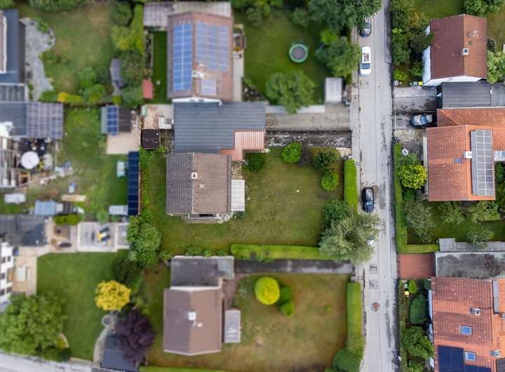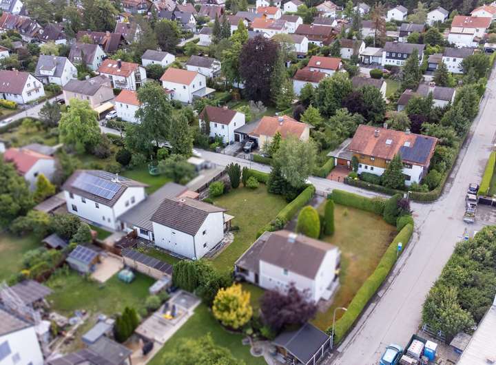 Das ca. 306,70 m² große Wohnbaugrundstück befindet sich in absolut ruhiger, familienfreundlicher Wohnlage. Es handelt sich um den vorderen Teil eines insgesamt ca. 722 m² großen Gesamtgrundstücks, welches im Zuge des Verkaufs real geteilt und auf zwei separate Grundstücke aufgeteilt wird. Das hintere Grundstück ist derzeit mit einem sanierungsbedürftigen Einfamilienhaus bebaut. Der Erwerb beider Grundstücke ist ebenfalls möglich.