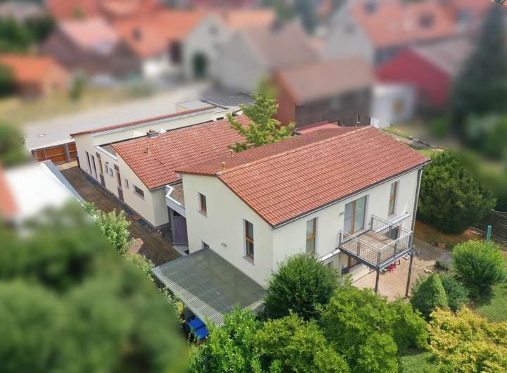 Zwei separate Gebäude (Wohnhaus + Praxis/Bürogebäude)