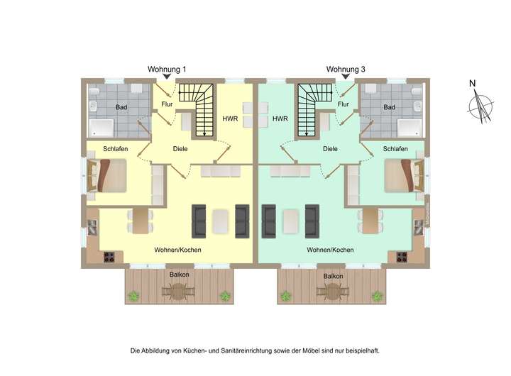 Zwei Doppelhaushälften mit je zwei Wohnungen. Ideal für Familien, Vermietung oder als Verkaufseinheiten.