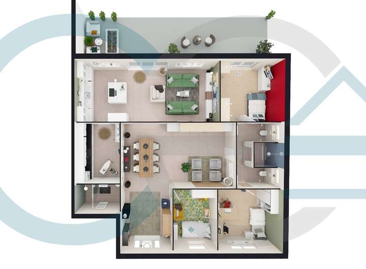 Die 3D-Grundrisse, sowie die Visualisierungen bieten eine realitätsnahe Darstellung der Raumaufteilung und Einrichtung der Wohnung. Dennoch sind leichte Abweichungen zur tatsächlichen Gestaltung möglich.